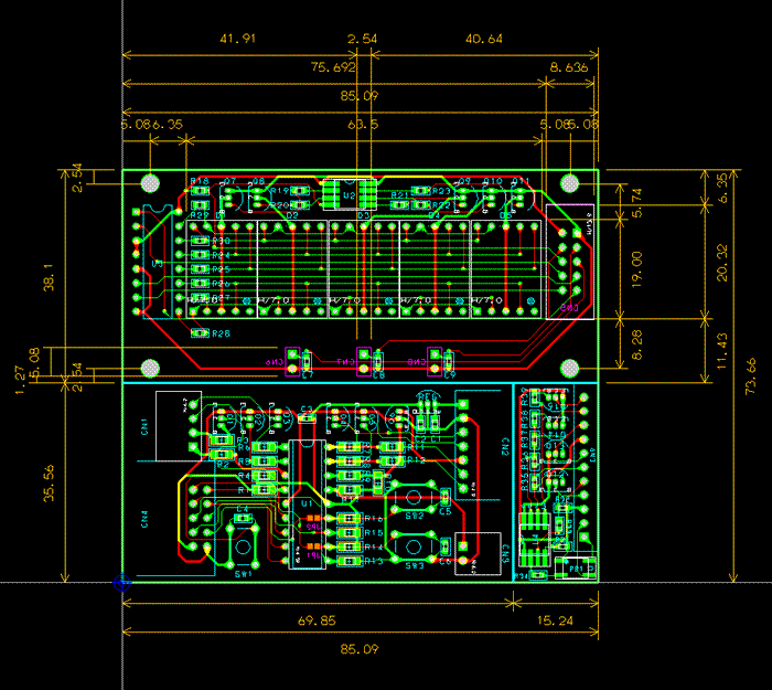 どうも、先週に引き続き今週は「コイン不要機+出玉カウンタ(パターン図編)」です。 先週の回路図でサンド基板のフォトリレーが部品番号「U1」になっていましたが、正しくは「PR1」です。 ってことで今回も少々長くなります。 こちらがパターン図です↓ ![]() 少し見難いですが、上半分は表示部分、下半分が本体とサンド基板でかなりコンパクトに纏めたつもりです。 本体はケースなどに収める必要がなくスイッチ部分とコネクタさえ露出していれば収縮チューブなどで絶縁するだけでよく、私は洗濯竿用のチューブをドライヤーであぶりパッケージしておりました。(スイッチ部分だけカッターでくりぬく) 本体と表示部をつなぐコネクターの表示部側「CN5」とヘッダーピン「CN6〜CN8」は基板裏面に付きます。 次に一部ですがハーネス図面です↓ ![]() ここで紹介するのは表示の都合上、代表的なメーカーの台ですがダウンロード用図面にはあと数社の物が含まれます。 ここで紹介しているハーネスは実機でテストしていますので間違いなく動作いたしますが、それ以外(図面に無い機種)に関してはコネクタ形状が同じでも動作は不明です。 さていよいよプログラムに入っていきますが、まずは表示部分から ダイナミック表示をパルスで桁送りするのでカウンタICを使ってもよかったのですが、取り扱いや基板配置などの関係もありPIC12F629の方がコンパクトでコストも安いのでこちらに決めました。 更にコストの安いPIC12C709でも代用可能なようにソースコードは作ってあります。 ;**************************************************** ; Filename: seg_select.asm * ; Programname: 7seg5桁セレクター * ; Version: Ver 1.0.0 * ; Assembler: MPLAB Ver7.50.00 * ;**************************************************** LIST P=12F629; INCLUDE "p12F629.inc"; __CONFIG _MCLRE_OFF & _INTRC_OSC_NOCLKOUT & _WDT_OFF &_PWRTE_ON ; ; LIST P=12C509A; ; INCLUDE "p12C509A.inc"; ; __CONFIG _MCLRE_OFF & _IntRC_OSC & _WDT_OFF ;******************************プログラム初期設定*************************** ;ファイルレジスタの定義(12F629用) WORK EQU 0x20 ;ウェイトループ用 MEM1 EQU 0x21 ;ウェイトループ用 COUNT EQU 0x22 ;ウェイトループ用 ;ファイルレジスタの定義(12C509A用) ;WORK EQU 0x0C ;桁カウント ;MEM1 EQU 0x0D ;桁あふれ制御 ;COUNT EQU 0x0E ;ウェイトループ用 ; ORG 0 ;リセットベクタ ;ポートの設定(12F629用) BSF STATUS,RP0 ; CALL 3FFh ; MOVWF OSCCAL ; MOVLW B'00001000' ;GP3入力 MOVWF TRISIO ;I/O設定 MOVLW B'00000000' ; MOVWF OPTION_REG ; BCF STATUS,RP0 ; CLRF GPIO ; MOVLW B'00000111' ; MOVWF CMCON ; ;ポートの設定(12C509A用) ; MOVLW B'11011111' ;GP2はI/0として使用 ; OPTION ; ; MOVLW B'001000' ;GP3入力 ; TRIS GPIO ;I/O設定 ;初期設定 INIT CLRF GPIO ;(0) → GPIO<0-5> MOVLW D'251' ; MOVWF MEM1 ;(251) → MEM1 CLRF WORK ;(0) → WORK CALL WAIT ; MARKER1 BTFSS GPIO, 3 ;GPIO<3> → (1)? パルス入力 GOTO MARKER1 ; MARKER2 BTFSC GPIO, 3 ;GPIO<3> → (0)? パルス入力 GOTO MARKER2 ; ;******************************プログラム本文*************************** ;入力ポートの読み取り P_IN_H BTFSS GPIO, 3 ;GPIO<3> → (1)? パルス入力 GOTO P_IN_H ; GOTO P_OUT ; P_IN_L BTFSC GPIO, 3 ;GPIO<3> → (0)? パルス入力 GOTO P_IN_L ; CLRF GPIO ;(0) → GPIO<0-5> GOTO P_IN_H ; ;ポート出力 P_OUT MOVF WORK, W ;WORK → (W) CALL TABLE ;テーブル呼び出し MOVWF GPIO ;(W) → GPIO ;メイン SHFT_ INCF WORK, F ;(WORK)をインクリメント MOVF WORK, W ;WORK → (W) ADDWF MEM1, W ;(W) + MEM1 → (W) BTFSC STATUS, C ;STATUSフラットパッケージ品なので「AKI−PICプログラマー」などで焼く際には変換アダプターが必要です。 続いてコインサンド制御のソースコードです↓ ;**************************************************** ; Filename: sand.asm * ; Programname: コインサンド制御 * ; Version: Ver 2.0.0 * ; Assembler: MPLAB Ver7.50.00 * ;**************************************************** LIST P=12F629; INCLUDE "p12F629.inc"; __CONFIG _MCLRE_OFF & _INTRC_OSC_NOCLKOUT & _WDT_OFF &_PWRTE_ON ; ; LIST P=12C509A; ; INCLUDE "p12C509A.inc"; ; __CONFIG _MCLRE_OFF & _IntRC_OSC & _WDT_OFF ;******************************プログラム初期設定*************************** ;ファイルレジスタの定義(12F629用) COUNT EQU 0x20 ;ウェイトループ用 COUNT2 EQU 0x21 ;ウェイトループ用 COUNT3 EQU 0x22 ;ウェイトループ用 ;ファイルレジスタの定義(12C509A用) ;COUNT EQU 0x0C ;ウェイトループ用 ;COUNT2 EQU 0x0D ;ウェイトループ用 ;COUNT3 EQU 0x0E ;ウェイトループ用 ;RAポート割り当て SENS0 SET 0 ;センサー0(ホッパーセンサ) SENS1 SET 1 ;センサー1(貯留部1) SENS2 SET 2 ;センサー2(貯留部2) MAGNET SET 3 ;電磁石 MOTOR SET 4 ;ホッパーモーター C_OUT SET 5 ;出力 ORG 0 ;リセットベクタ ;ポートの設定(12F629用) BSF STATUS,RP0 ; CALL 3FFh ; MOVWF OSCCAL ; MOVLW B'00011000' ;GP3:4入力 MOVWF TRISIO ;I/O設定 MOVLW B'00000000' ; MOVWF OPTION_REG ; BCF STATUS,RP0 ; CLRF GPIO ; MOVLW B'00000111' ; MOVWF CMCON ; ;ポートの設定(12C509A用) ; MOVLW B'11011111' ;GP2はI/0として使用 ; OPTION ; ; MOVLW B'00111000' ;GP3:5入力 ; TRIS GPIO ;I/O設定 ;初期設定 INIT BCF GPIO,SENS0 ;GP0←L BSF GPIO,SENS1 ;GP1←H BCF GPIO,SENS2 ;GP2←L BSF GPIO,C_OUT ;GP5←H ;******************************プログラム本文*************************** ;入力ポートの読み取り P_IN BTFSS GPIO,MAGNET ;GP3 → (1)? GOTO MAG_ON ;電磁石ONへ BTFSS GPIO,MOTOR ;GP4 → (1)? GOTO MOT_ON ;ホッパーモーターONへ GOT